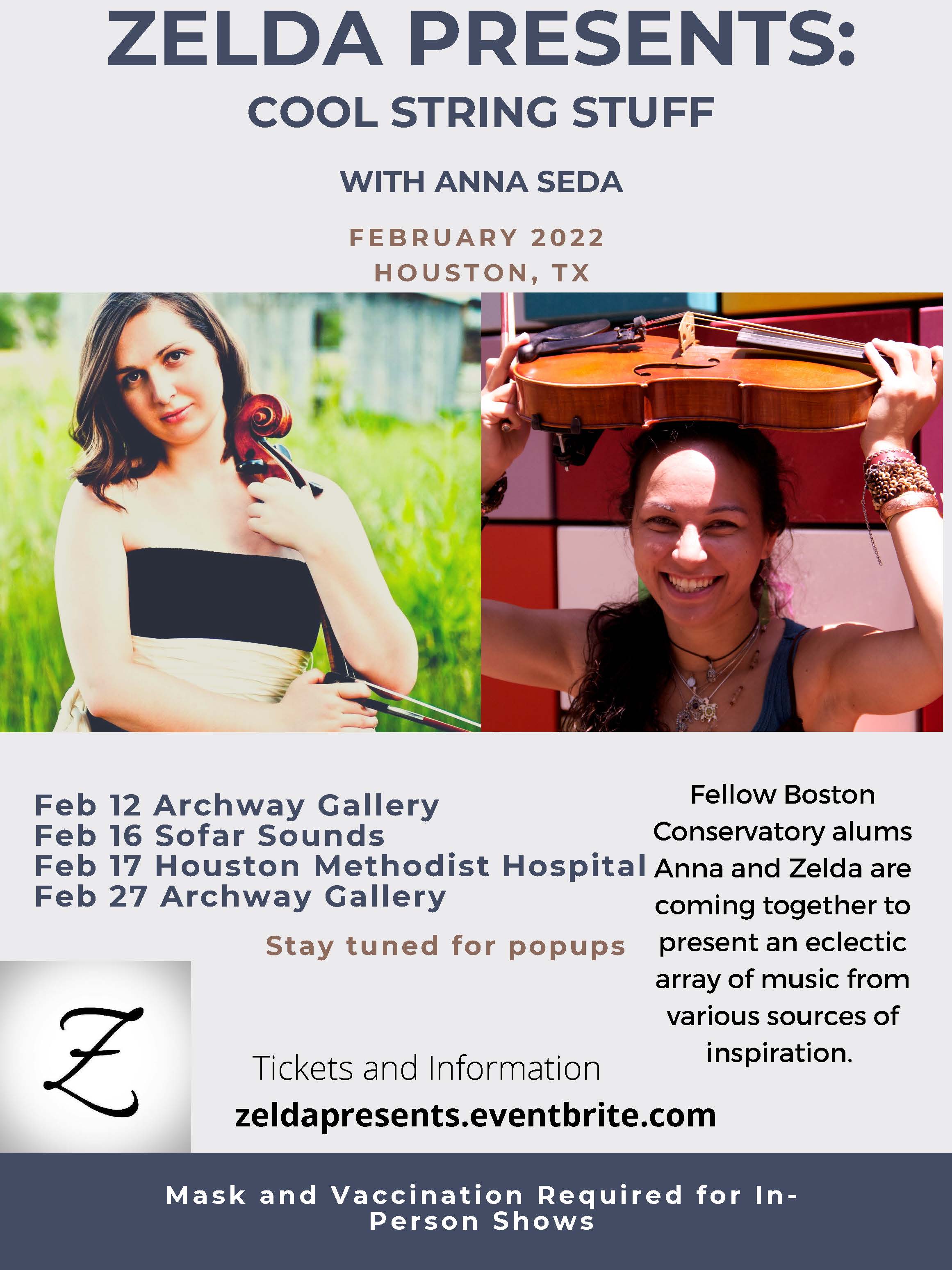 I also participate in a variety of other productions, from symphony concerts to musicals to operas to singer-songwriter shows to other people’s chamber projects, which will be listed under Zelda Plays.